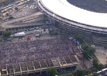 Público lota o estádio do Maracanã para o evento Família ao Pé da Cruz no Rio de Janeiro Com a...