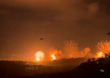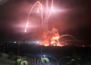 Imagens divulgadas nas redes sociais registram o momento em que explosões atingem Caracas, capital da Venezuela, durante a madrugada deste ...