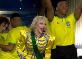 Camisa da seleção, símbolo de bolsonaristas, é ressignificada por Lady Gaga Lady Gaga foi ciceroneada por dançarinos vestidos com uniforme...