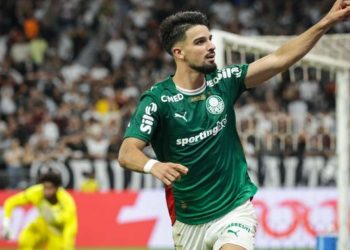 Matheuzinho responde à provocação de Flaco López em gol do Palmeiras no Derby Atacante argentino chutou bandeira de escanteio com...
