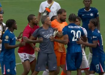 Luís Enrique, treinador do PSG, dá tapa em João Pedro, do Chelsea, após derrota no Mundial Confusão tomou conta do...