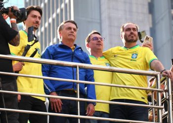 1 de 1 Jair Bolsonaro com os filhos Renan, Flávio e Carlos – Avenida Paulista - Foto: Fábio Vieira/ O...